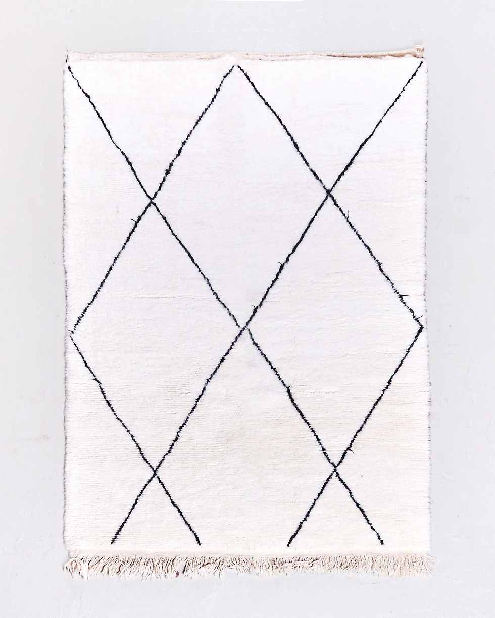 Vous cherchez un tapis graphique, discret et authentique ? Notre sélection de tapis berbères à motifs de losanges est une excellente alternative aux traditionnels tapis berbères colorés. Faîtes le choix de la sobriété et optez pour un tapis berbère à losanges! Nous vous proposons un grand choix de tapis berbères Noir et blanc : des traditionnels tapis Beni Ouarain, dont le moelleux et le confort n’est plus à démontrer, mais aussi des tapis Azilal aux motifs graphiques multiples ou encore des tapis M’rirt haut de gamme dont l’épaisseur et la douceur de la laine ainsi que la technique de tissage très serrée en font des objets uniques et luxueux. Que vous préfériez des motifs de losanges graphiques épurés, des losanges plus complexes soigneusement pensés par nos équipes et réalisés par nos artisans partenaires, ou encore des motifs de losanges gravés dans la trame pour un graphisme plus subtil, ou des losanges de couleur nous vous proposons un large choix dans notre boutique en ligne mais aussi dans notre atelier parisien. Les tapis berbères à losanges, comme les autres tapis berbères, sont fabriqués à partir de laine de mouton dans les régions montagneuses de l’Atlas, la qualité de la laine mais aussi sa teinture garantissent la qualité et l’authenticité de chaque tapis tissé. A l’origine, seuls des colorants naturels étaient utilisés pour la teinture de la laine, dans des teintes profondes : le noir, l’ocre, le brun, des nuances sourdes de rouge, d’orange, de terracotta. L’évolution des goûts et des envies fait qu’aujourd’hui, nous pouvons vous proposer une palette de couleur inégalable : des bleu majorelle, des roses, fuchsia, orange, rouge, des verts profonds mais aussi des couleurs fluo. Que vous préféreriez des couleurs patinées, pastels, tons sur tons ou au contraire des couleurs vibrantes et fortes, nous vous proposons la plus large sélection de tapis berbères marocains colorés. Faîtes le choix de la modernité et de l’authenticité pour toutes les pièces de votre maison : dans votre salon ou une chambre d’enfant, vous pourrez trouver dans notre boutique ligne des tapis de toute taille, de descente de lit jusqu’aux formats XXL Les tapis berbères marocains reflètent l'excellence de l'artisanat marocain, tissés sur des métiers traditionnels en bois dans les régions montagneuses du Maroc (Haut-Atlas ou Moyen Atlas selon les typologies de tapis), par des femmes berbères chez elles ou regroupées en coopératives dans des villages montagneux reculés. Tous les tapis berbères sont fabriqués à partir de laine de mouton et tissés en noeuds. Il faut compter entre 4 et 8 semaines de fabrication pour un tapis berbère, cela dépend de la taille et de la complexité des motifs. Au fil des années, les tapis berbères sont devenus des classiques de la décoration, et quel que soit le motif, ils s'adaptent dans tout style d'intérieur : industriel, scandinave, vintage, bohème chic mais surtout dans toutes les pièces de votre maison. Ils amènent douceur, style et design dans votre salon sous votre canapé et votre table basse, dans votre chambre et celles des enfants. Fabriqués à partir de matériaux naturels, ce sont des objets durables, adopter un tapis berbère c'est le garder durant des années ! Choisir un tapis berbère, c’est participer à la pérennisation des savoir faire des femmes berbères, c’est également le choix d’une décoration authentique et responsable. Faîtes entrer la culture berbère dans votre intérieur ! Vous souhaitez acquérir un tapis berbère à losanges? Notre showroom parisien vous accueille chaque jour sur rendez-vous. Des questions ? N’hésitez pas à nous contacter directement, notre équipe se tient à votre disposition pour vous accompagner dans le choix de votre tapis. Vous pouvez également trouver des informations sur notre site internet rubrique Foire aux questions Vous êtes professionnels, consultez notre page dédiée