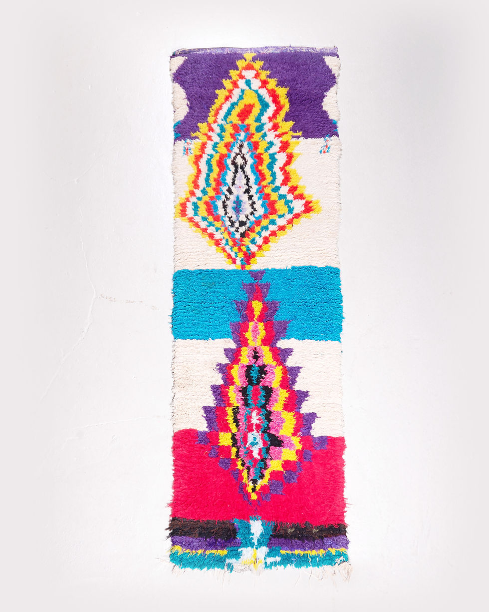 Découvrez notre sélection de tapis berbères fluos, des modèles résolument contemporains et modernes. Ce sont souvent des tapis berbères Azilal au tissage souple et aux motifs traditionnels issu du dictionnaire de la symbolique berbère. Ces motifs traditionnels sont revisites pour apporter une touche ultra colorée à votre intérieur. Que vous préfériez des motifs contemporains minimalistes, des dessins soigneusement pensés par nos équipes et réalisés par nos artisans partenaires, ou encore des motifs plus traditionnels tels que les losanges, les pois ou les motifs symboles de la culture berbère, nous vous proposons un large choix dans notre boutique en ligne mais aussi dans notre showroom parisien. Faîtes le choix de la modernité et de l’authenticité pour toutes les pièces de votre maison : dans votre salon ou une chambre d’enfant, vous pourrez trouver dans notre boutique ligne des tapis de toute taille, de descente de lit jusqu’aux formats XXL Vous souhaitez acquérir un tapis Fluo ? Notre showroom parisien vous accueille chaque jour sur rendez-vous Des questions ? N’hésitez pas à nous contacter directement, notre équipe se tient à votre disposition pour vous accompagner dans le choix de votre tapis. Vous pouvez également trouver des informations sur notre site internet rubrique Foire aux questions Vous êtes professionnels, consultez notre page dédiée