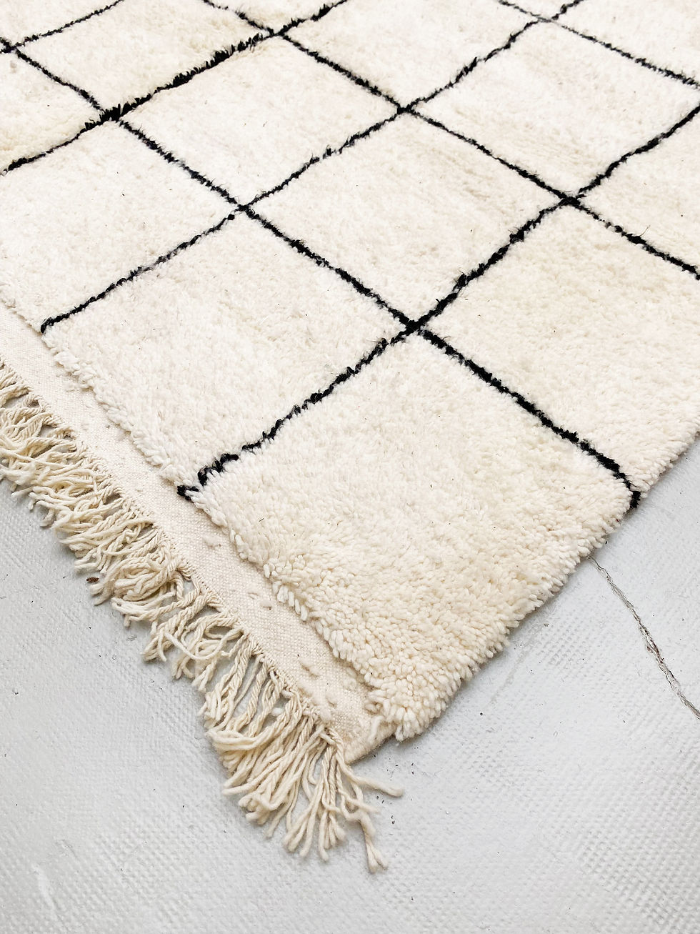 Vous cherchez un tapis graphique, discret et authentique ? Notre sélection de tapis berbères Noir et Blanc est une excellente alternative aux traditionnels tapis berbères colorés. Faîtes le choix de la sobriété et optez pour un tapis berbère noir et blanc ! Nous vous proposons un grand choix de tapis berbères Noir et blanc : des traditionnels tapis Beni Ouarain, dont le moelleux et le confort n’est plus à démontrer, mais aussi des tapis Azilal aux motifs graphiques multiples ou encore des tapis M’rirt haut de gamme dont l’épaisseur et la douceur de la laine ainsi que la technique de tissage très serrée en font des objets uniques et luxueux. Que vous préfériez des motifs contemporains minimalistes, des dessins soigneusement pensés par nos équipes et réalisés par nos artisans partenaires, ou encore des motifs plus traditionnels tels que les losanges, les pois ou les motifs symboles de la culture berbère, nous vous proposons un large choix dans notre boutique en ligne mais aussi dans notre atelier parisien. Les tapis berbères Noir et Blanc, comme les autres tapis berbères, sont fabriqués à partir de laine de mouton dans les régions montagneuses de l’Atlas, la qualité de la laine mais aussi sa teinture garantissent la qualité et l’authenticité de chaque tapis tissé. A l’origine, seuls des colorants naturels étaient utilisés pour la teinture de la laine, dans des teintes profondes : le noir, l’ocre, le brun, des nuances sourdes de rouge, d’orange, de terracotta. L’évolution des goûts et des envies fait qu’aujourd’hui, nous pouvons vous proposer une palette de couleur inégalable : des bleu majorelle, des roses, fuchsia, orange, rouge, des verts profonds mais aussi des couleurs fluo. Que vous préféreriez des couleurs patinées, pastels, tons sur tons ou au contraire des couleurs vibrantes et fortes, nous vous proposons la plus large sélection de tapis berbères marocains colorés. Faîtes le choix de la modernité et de l’authenticité pour toutes les pièces de votre maison : dans votre salon ou une chambre d’enfant, vous pourrez trouver dans notre boutique ligne des tapis de toute taille, de descente de lit jusqu’aux formats XXL Les tapis berbères marocains reflètent l'excellence de l'artisanat marocain, tissés sur des métiers traditionnels en bois dans les régions montagneuses du Maroc (Haut-Atlas ou Moyen Atlas selon les typologies de tapis), par des femmes berbères chez elles ou regroupées en coopératives dans des villages montagneux reculés. Tous les tapis berbères sont fabriqués à partir de laine de mouton et tissés en noeuds. Il faut compter entre 4 et 8 semaines de fabrication pour un tapis berbère, cela dépend de la taille et de la complexité des motifs. Au fil des années, les tapis berbères sont devenus des classiques de la décoration, et quel que soit le motif, ils s'adaptent dans tout style d'intérieur : industriel, scandinave, vintage, bohème chic mais surtout dans toutes les pièces de votre maison. Ils amènent douceur, style et design dans votre salon sous votre canapé et votre table basse, dans votre chambre et celles des enfants. Fabriqués à partir de matériaux naturels, ce sont des objets durables, adopter un tapis berbère c'est le garder durant des années ! Choisir un tapis berbère, c’est participer à la pérennisation des savoir faire des femmes berbères, c’est également le choix d’une décoration authentique et responsable. Faîtes entrer la culture berbère dans votre intérieur ! Vous souhaitez acquérir un tapis Noir et Blanc? Notre showroom parisien vous accueille chaque jour sur rendez-vous. Des questions ? N’hésitez pas à nous contacter directement, notre équipe se tient à votre disposition pour vous accompagner dans le choix de votre tapis. Vous pouvez également trouver des informations sur notre site internet rubrique Foire aux questions Vous êtes professionnels, consultez notre page dédiée